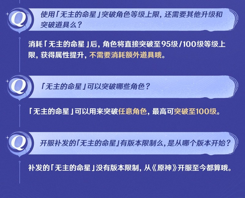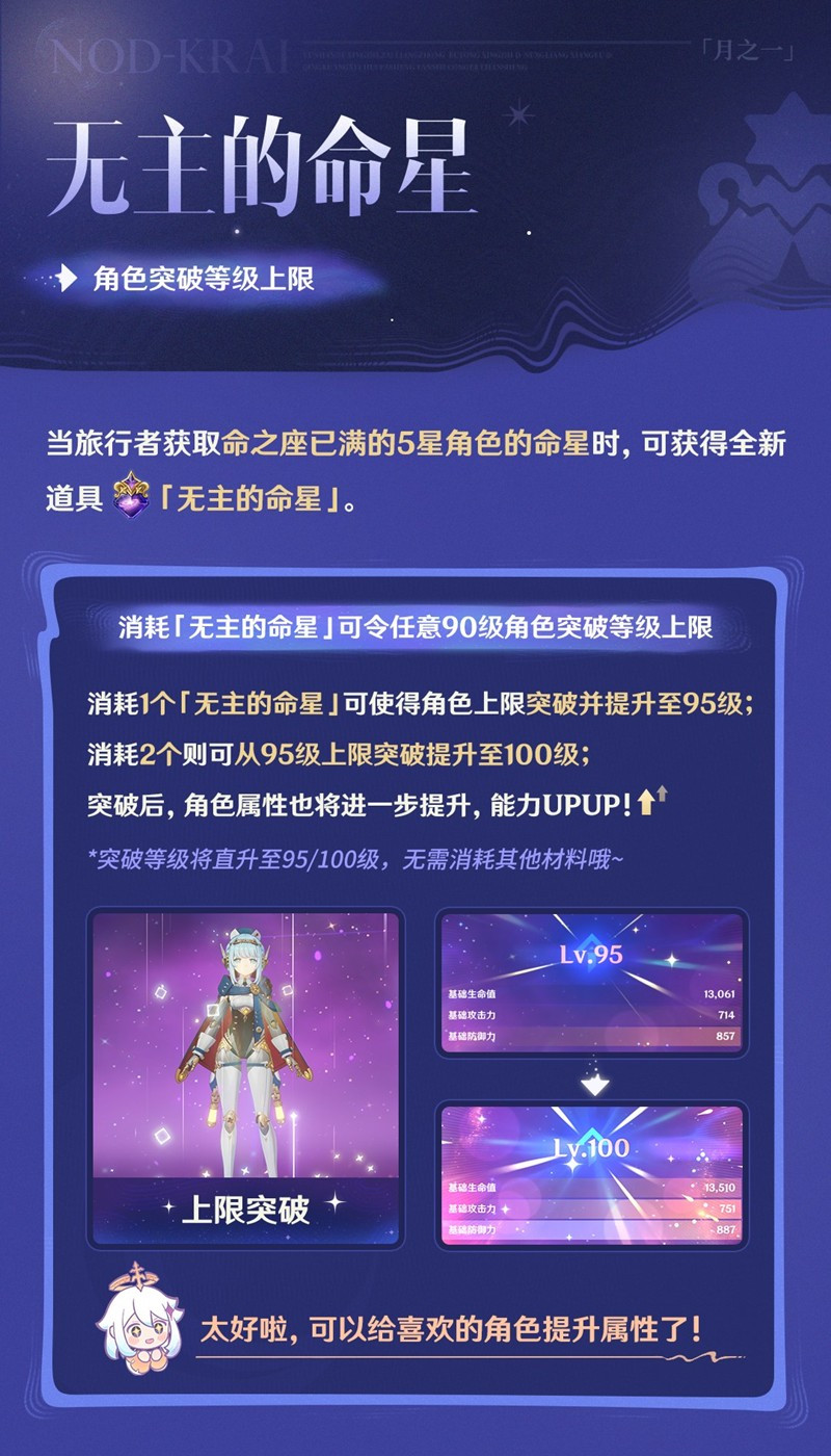 值得一提的是,使用无主的命星提升角色等级时,无需再额外支付摩拉或消耗经验书,大大简化了角色升级流程,为玩家减负。
