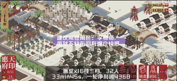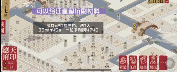 除寿材店外,其他选择二、三档的建筑,基本每半小时到三刻钟收取一次产出即可。按此方式操作,一天大概能赚取 40~50 万铜钱,无需精准卡 1 分半或 3 分钟的短时间间隔去反复刷产出。总的来说,苏州的赚钱效率肯定高于应天,另外提醒大家,氪金时尽量不要直接购买铜钱,性价比不高。