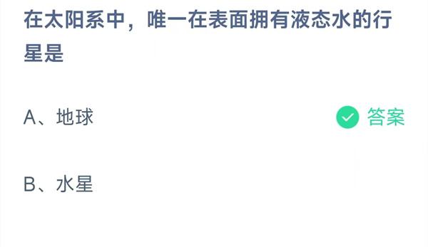 在太阳系中,唯一在表面拥有液态水的行星是?这是今天《支付宝》每日一题的问题,相信我们很多用户都很想知道这个问题的答案是什么?这么一个可以领取饲料的机会相信我们很多用户都不想错过,这里羊托游小编为你带来了2025《支付宝》9月28日每日一题最新答案介绍(2)的全部内容,喜欢的小伙伴欢迎点击进入看看吧。
