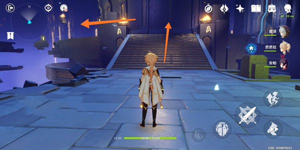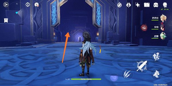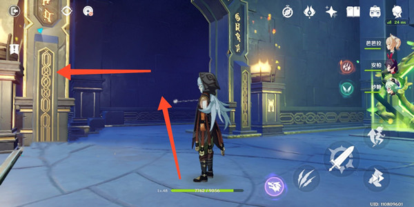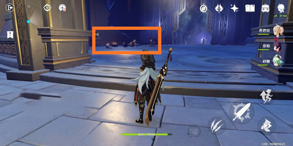 1、首先进入大门后直接往前走,接着向左转弯,转弯后能看到旁边有两个小怪,切换风属性角色使用风压技能,将这两个小怪推下去即可。