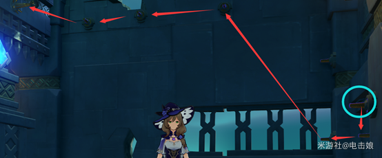11、副本内有一处下图所示的机关,需要使用雷系角色才能激活;推荐用丽莎的 E 技能攻击机关,激活后即可开启前方的大门。
