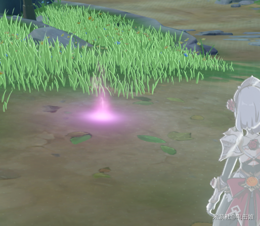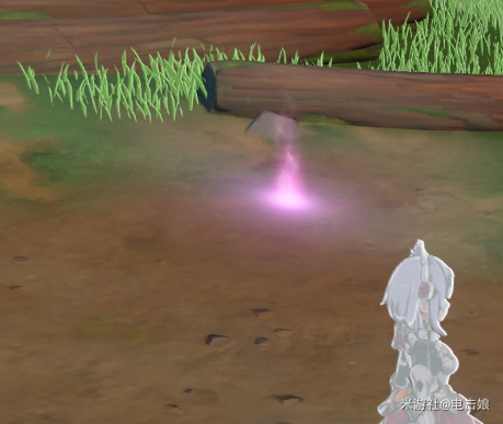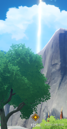 3、沿着山路往上走,到达指定位置后,再次开启元素视野,就能看到指引任务的紫色光点。