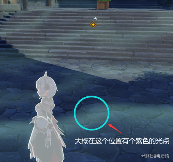 6、继续推进搜寻流程,开启元素视野后,会找到下一个指引方向的紫色光点。