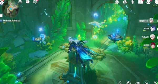 6、前往区域的另一侧,找到对应的机关并与之交互,交互后乘坐升降梯向上返回。