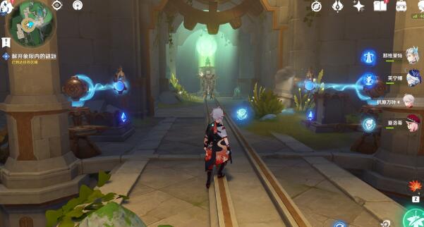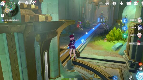 7、回到上层后,寻找并跟随附近的仙灵移动,跟着仙灵往下走,即可解除下方的屏障。