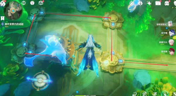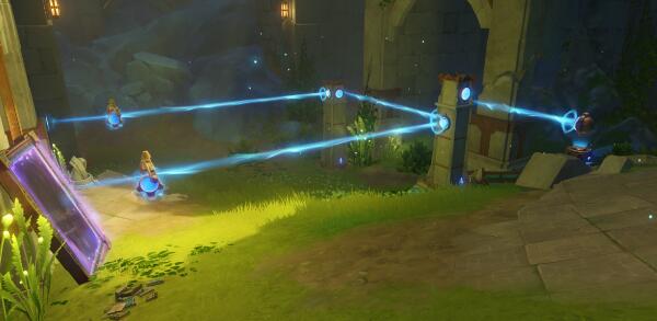 4、来到指定的解谜机关处,对准机关上的晶体发射光束,让晶体旋转 180 度,完成这一步解谜。