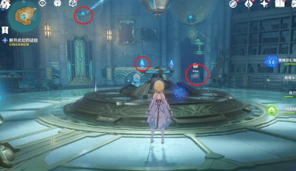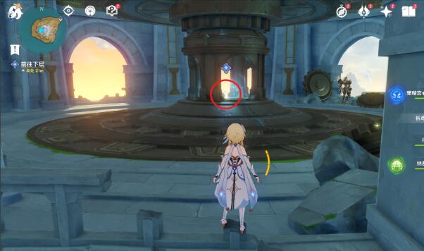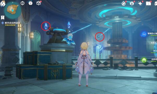 16、离开房间前往高塔中间位置,将收集到的三个根源之轮进行交付,交付后前往下层区域。