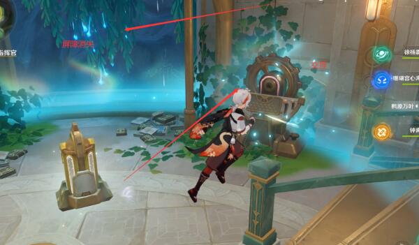 4、击败愚人众后,接着将红色机关移动到任意合适位置,再操作机关将其切换为蓝色状态。
