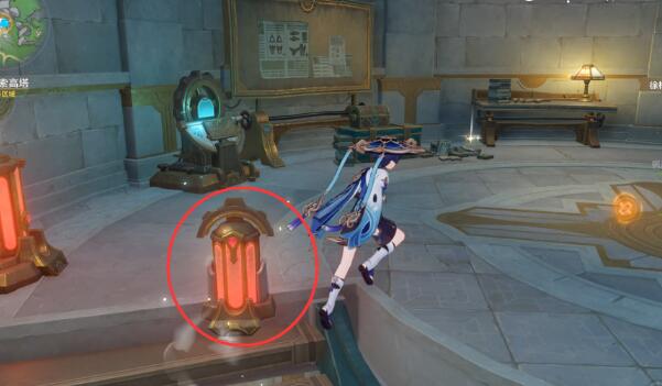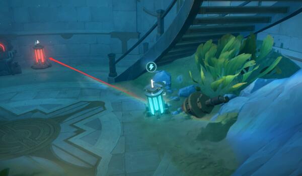 2、接取任务后,接着找到下层的开关并启动,启动后可将附近的机关变为红色状态。