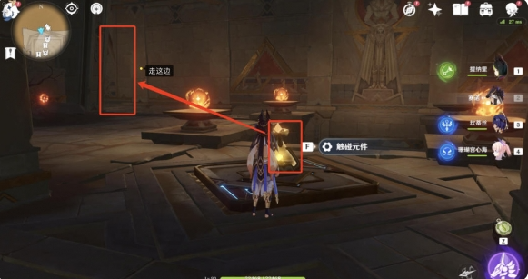 2、到达大门附近后,找到黄色机关,接着往黄色机关左侧的门走,进入该门内。
