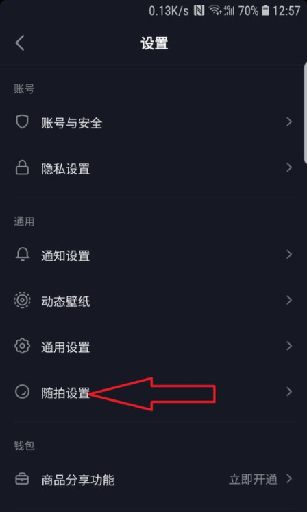 3、接着在设置中,找到“随拍设置”这一栏,继续点击进去查看详情。