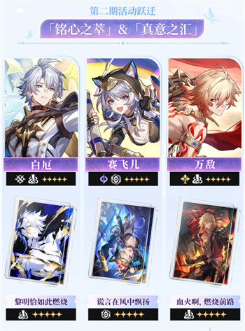 1、复刻五星角色:白厄、赛飞儿、万敌