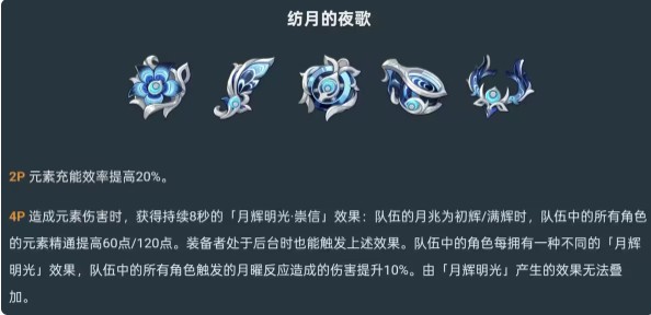 圣遗物套装可选:精通/充能/防御沙、精通/防御杯、精通/防御头(副词条推荐:精通与防御优先于充能,也可考虑双暴击);