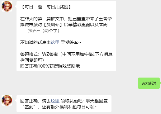 今日问题:在昨天的第一篇推文中,妲己宝宝带来了王者荣耀城市派对【深圳站】启幕精彩集锦以及本周____预告~(两个字)