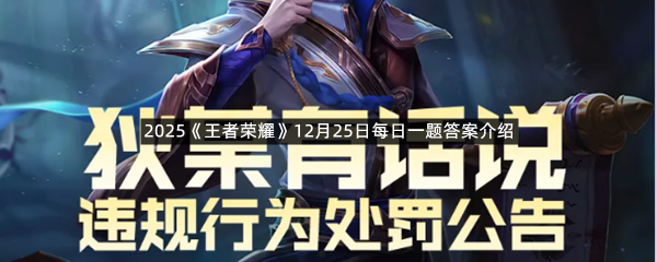 在昨天的推文中,狄仁杰带来了12月15日-12月21日____行为处罚公告。(两个字),这是今天《王者荣耀》2025年12月25日的每日一题问题,相信很多玩家不是很清楚今天的问题答案是什么,这里羊托游小编为你带来了2025《王者荣耀》12月25日每日一题答案介绍的全部内容,感兴趣的小伙伴欢迎点击进入看看吧。