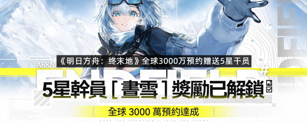 全球 3000 万预约达成!届时将赠送 5 星干员「昼雪」。
