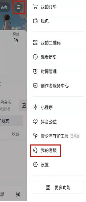 1、点击“我”,然后在三横线图标页面点击“我的客服”选项。