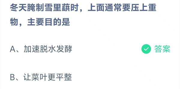 A:加速脱水发酵 B:让菜叶更平整