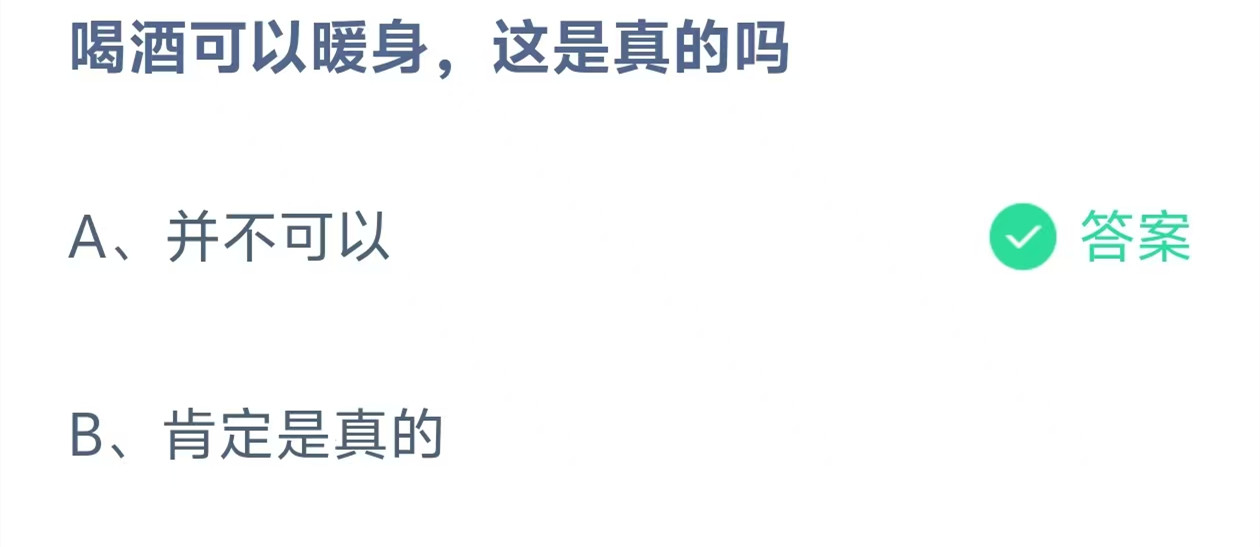 喝酒可以暖身,这是真的吗?这是今天《支付宝》每日一题的问题,相信我们很多用户都很想知道这个问题的答案是什么?这么一个可以领取饲料的机会相信我们很多用户都不想错过,这里羊托游小编为你带来了2025《支付宝》12月31日每日一题最新答案介绍(1)的全部内容,喜欢的小伙伴欢迎点击进入看看吧。
