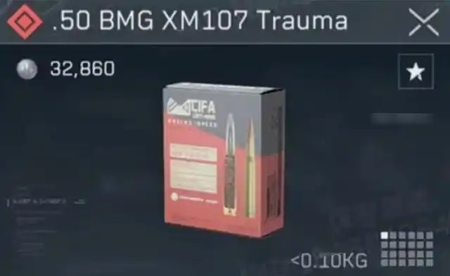 5、50BMG系列弹药(M10"RAZOR"、M3"K-0"、M903 SLAP):穿透等级最高7级,各有专属效果(创伤、失能、穿甲),无法放入安全箱,高风险高收益;XM107 Trauma创伤弹牺牲穿透力换极致伤害,反人员能力极佳。