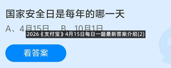 国家安全日是每年的哪一天?这是今天《支付宝》每日一题的问题,相信我们很多用户都很