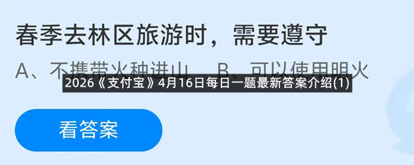 春季去林区旅游时,需要遵守?这是今天《支付宝》每日一题的问题,相信我们很多用户都