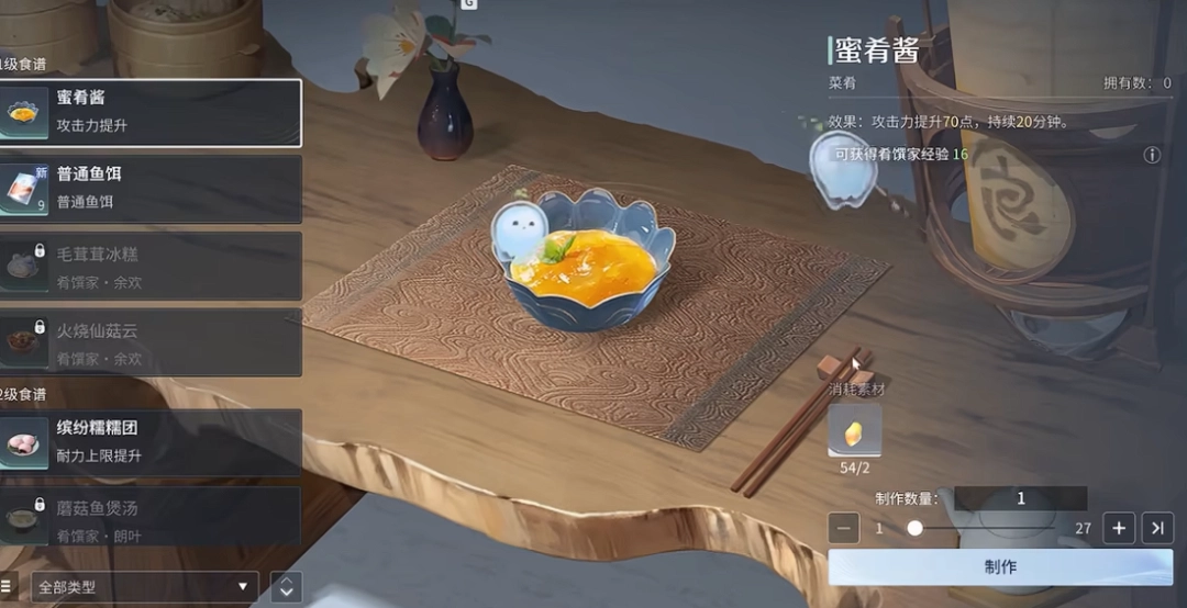 前提:完成主线第三章后可解锁《肴馔之道》任务,从而开启烹饪系统。