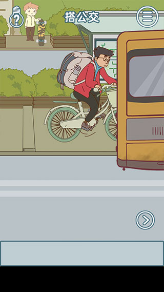 3、在第一个关卡“乘坐公交车”中,你可以切换到右下角的下一个场景。点击左上角的自行车。
