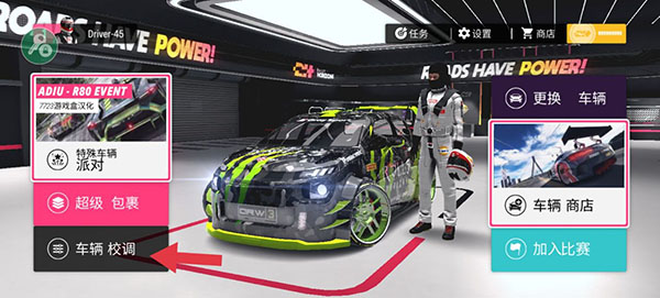 1、在拉力地平线游戏首页,选择车辆校准功能。