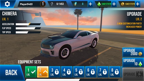 4、点击 “Upgrade Car”,消耗金币升级车辆,每次升级兼具外形变化与属性提升。