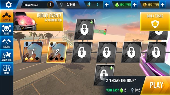 3、点击 “Play” 后选闯关车辆,左右箭头切换,未解锁车辆可耗绿宝石点击 “Buy” 解锁。