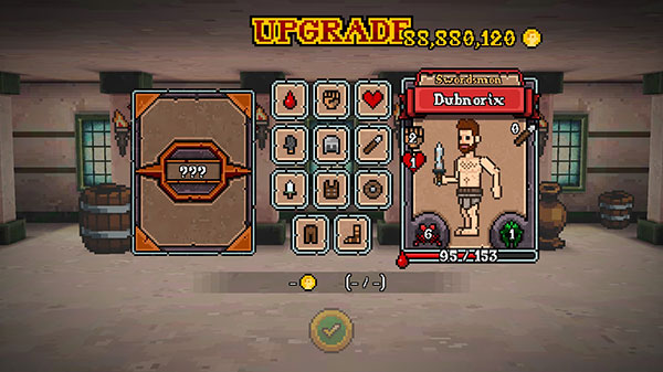 5、用金币解锁剑、斧、盾牌等装备,升级角色属性,大幅提升实战战斗力。
