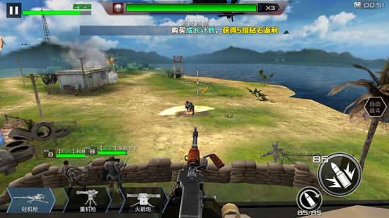 4、抢滩登陆3D中的玩家需要控制炮塔射击。他们可以通过滑动屏幕来旋转视角,并点击屏幕向敌人射击。