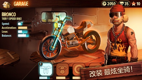 2、选择你最喜欢的摩托车,并选择超过50个独特的轨道之一,开始你的摩托车特技之旅。