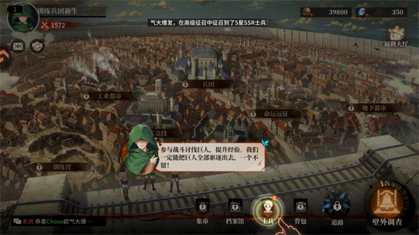 5、完成装备后,我们点击壁外调查按钮,准备进入任务挑战。