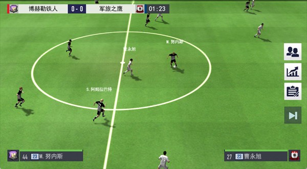 比赛中要灵活运用球员的射门、传球等“精准操控”系统,实时观察球员表现,根据比赛局势随时调整战术安排,体验更真实、更刺激的竞技快感。