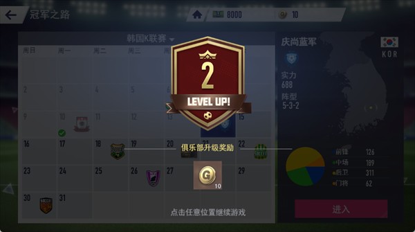 通过参加“冠军之路”等赛事,可以不断提升俱乐部等级。等级提升后,将获得金币、道具等奖励,这些资源可用于后续的球队建设和阵容优化。