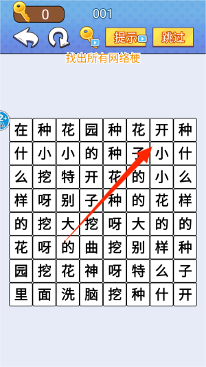 3、系统会生成一组文字方阵,玩家需要迅速识别并标记其中的网络流行词语,考验反应和观察能力。