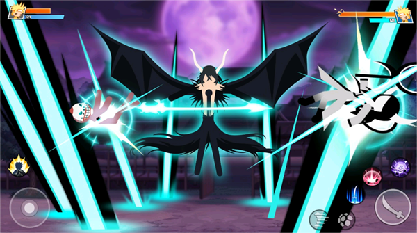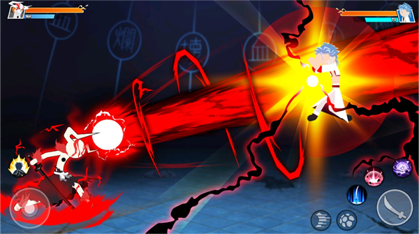 2、火柴人灵魂格斗的视觉表现富有冲击力,灵魂抽取时呈现虹吸效应。恶魔变身全身点燃深蓝火焰,奥义释放穿插全屏动画表演。