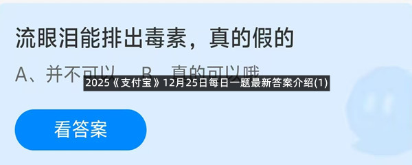 流眼泪能排出毒素,真的假的?这是今天《支付宝》每日一题的问题