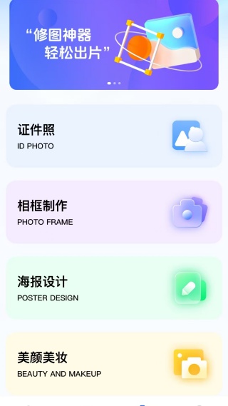 3、内置证件照、相框制作、海报设计、美颜美妆等工具,可随时调用使用。