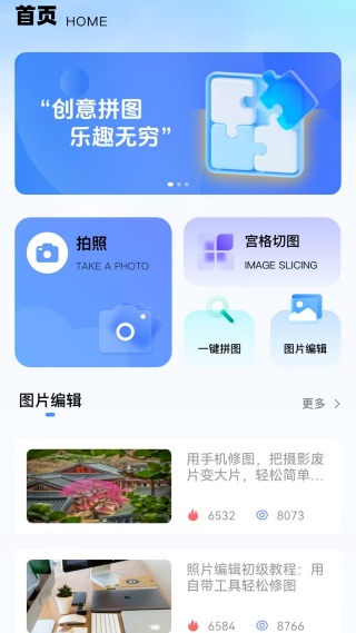 1、进入首页即可开启创意拼图模式,操作便捷高效,轻松实现多图拼接。