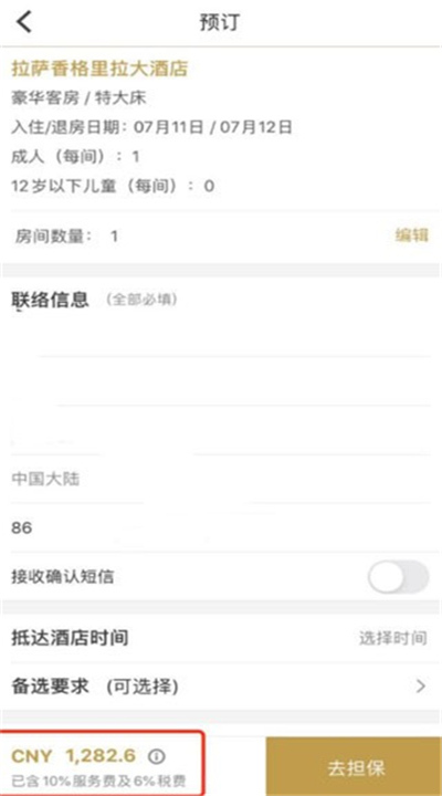 3、完成酒店预订后,界面会显示详细的预订信息。
