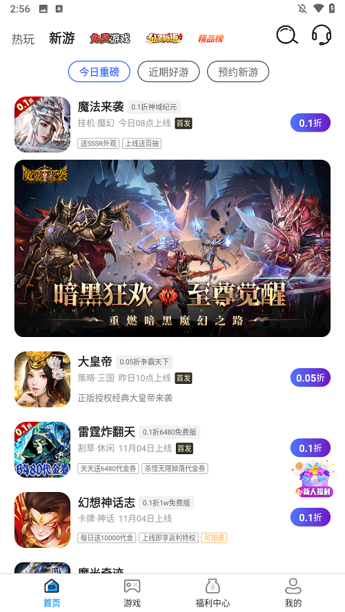 1、下载打开 0.01 折游戏盒子,含热游、新游等多个游戏分类。