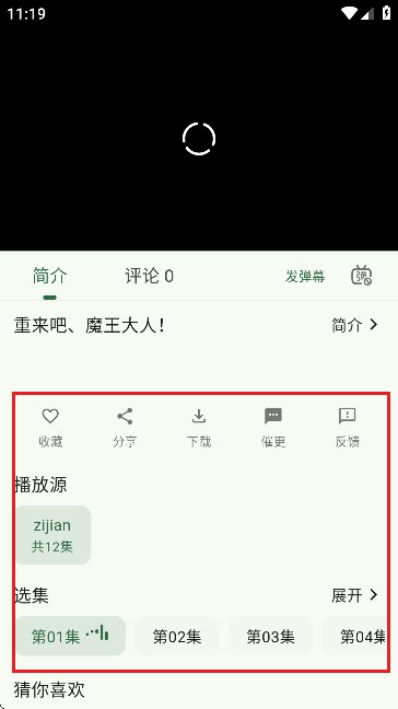 2、选一部喜欢的动漫点封面进播放页,能收藏、分享还能下载。