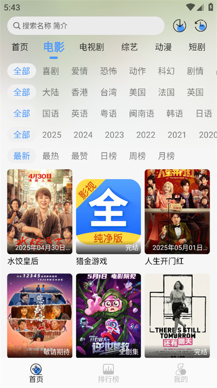 4、该主页分类清晰,涵盖了各种电影和电视类型。资源库每天更新。搜索功能支持关键词关联,可以精准匹配用户需求,帮助用户快速找到自己感兴趣的电影。