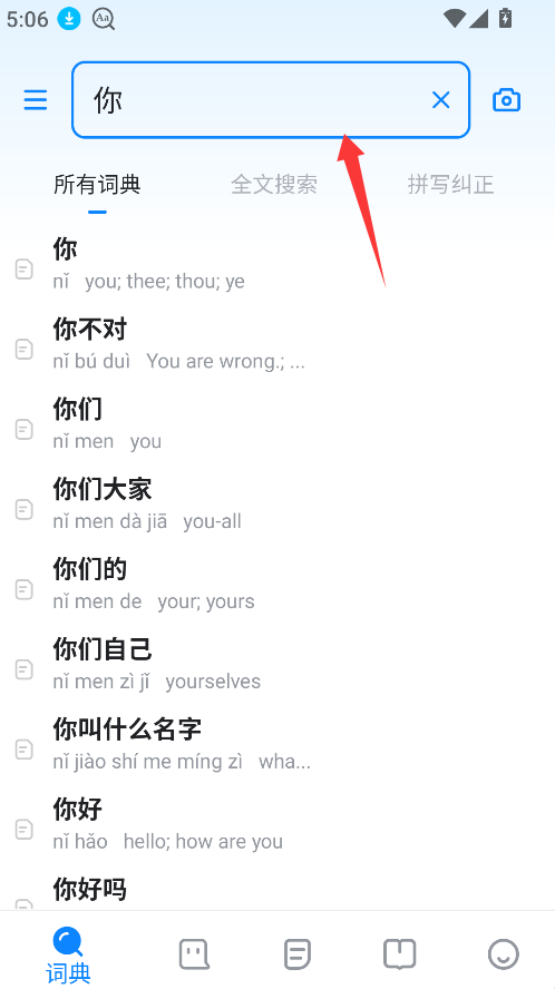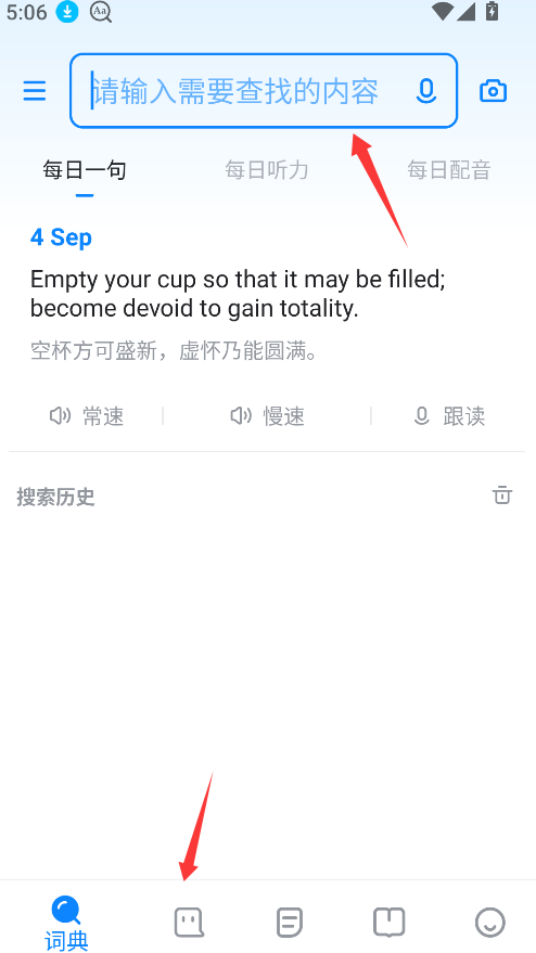 1、打开欧路词典,在输入栏输入词汇 / 句子,也可通过语音、拍照输入,选好源语言与目标语言后点击确认。