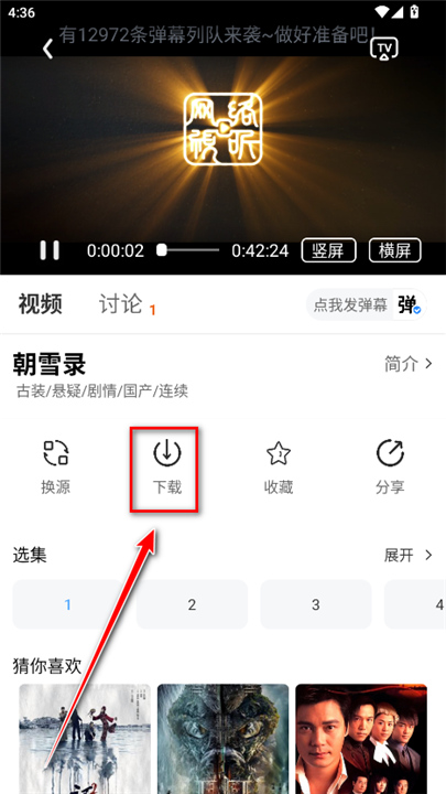 2、进入播放页,在控制栏附近点击明显的 “下载” 按钮。
