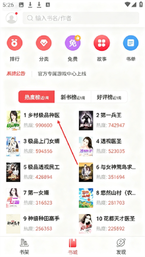 3、书城页面点【排行】,通过各类榜单挑选心仪小说。