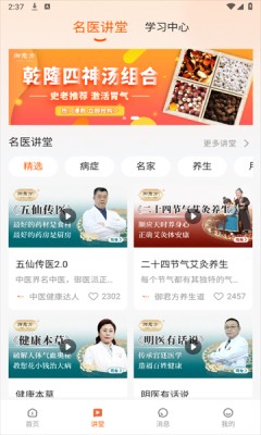 2、在课程界面上,您可以看到著名中医的各种优质课程。